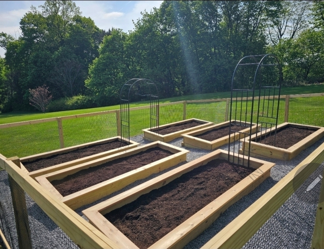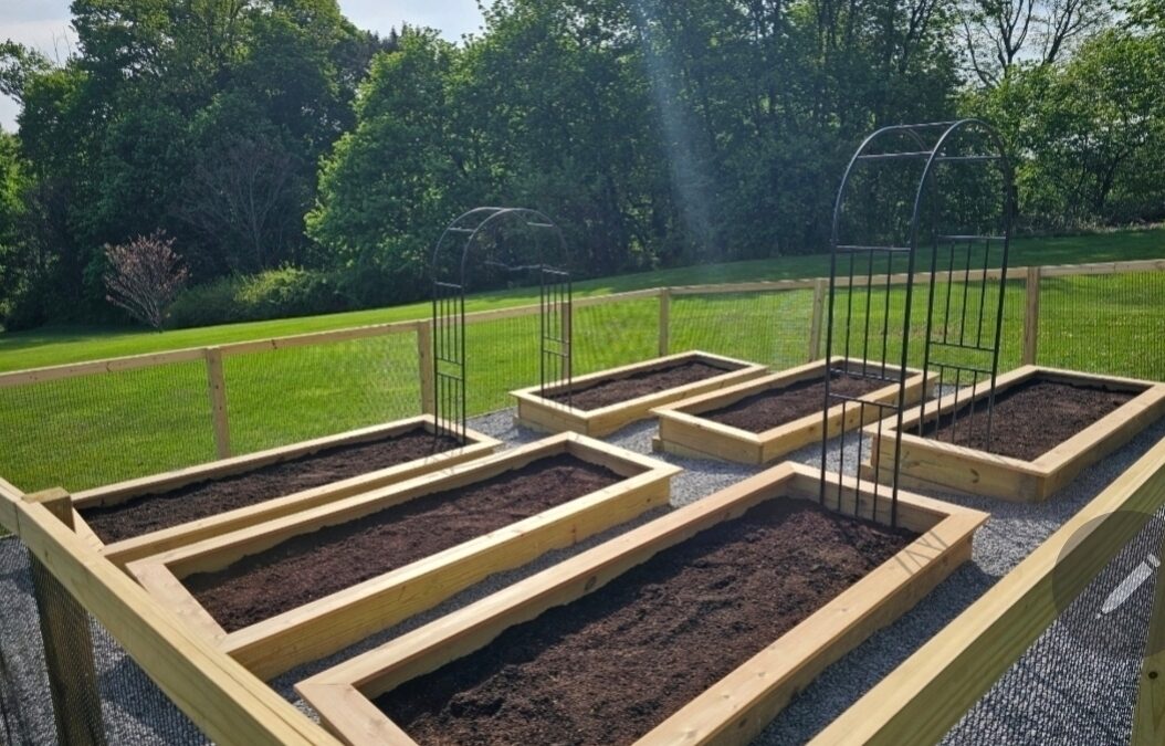 To deliver the generous planting space the owners hoped for, Bruce built extra-large raised beds, each approximately 12 feet long—a substantial size that supports serious growing throughout the season.